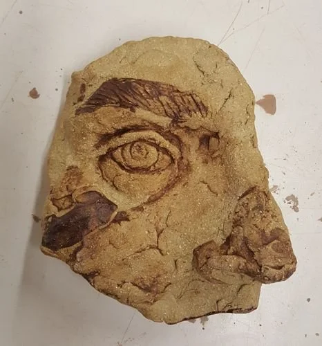 These tests were done splitting Grolleg, Red Art, and OM4 at different proportions. They were all sculpted into particular test tiles and then fired to Cone 6 and Cone 10. I’ve made these tests as a part of a class in learning about clays and clay bodies. While I did not care for sculpting with any of these, I use the clay slip from the #7 tile shown below to paint my sculptures.